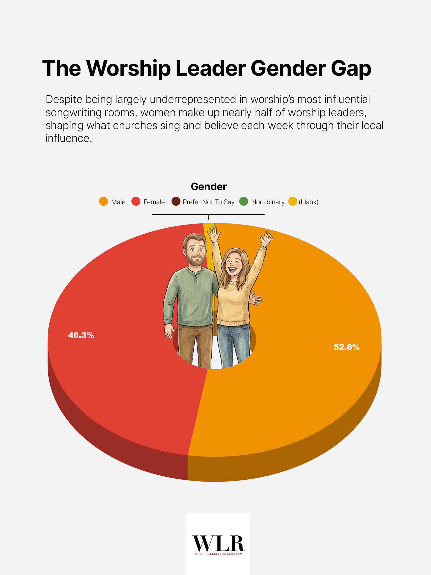 Worship Leader Research (WLR) recently completed the largest survey of worship leaders ever conducted in North America, with over 3,600 participants across the U.S. and Canada.1 Our sampling method was a convenience survey distributed through our email list, the WLR social media networks, and an extended circle of colleagues including: worship professors, social media accounts,prominent worship leaders, and others who write publicly about worship music. The data from our survey is not weighted to match national averages of churches or leaders, unlike some larger national surveys. For the first time, we can move beyond anecdotes and stereotypes and see who these influential leaders actually are. The data reveals some genuinely surprising patterns.
